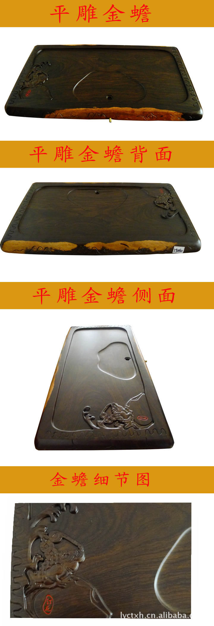 平雕黑檀金蟾