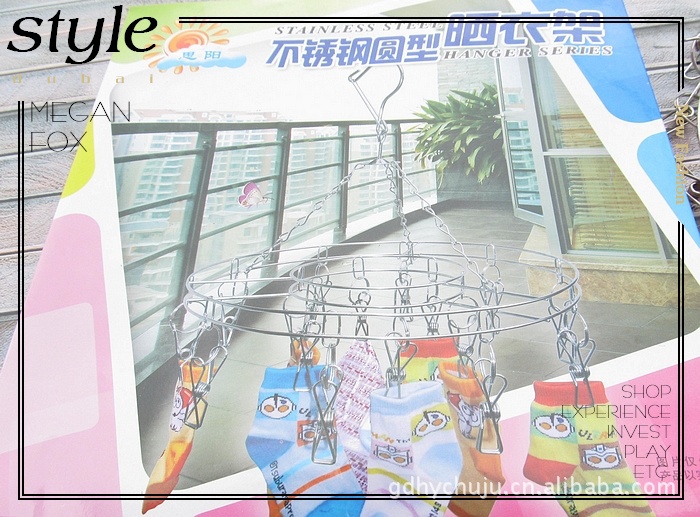 【提示】由于此類不銹鋼襪架的實用性不斷被認可推廣,現在市場上也出現了一些劣質產品,材料單薄,主要是夾子是小夾子,夾子長3-4cm左右,而且夾力差,價格低廉。請貨仔細比對。