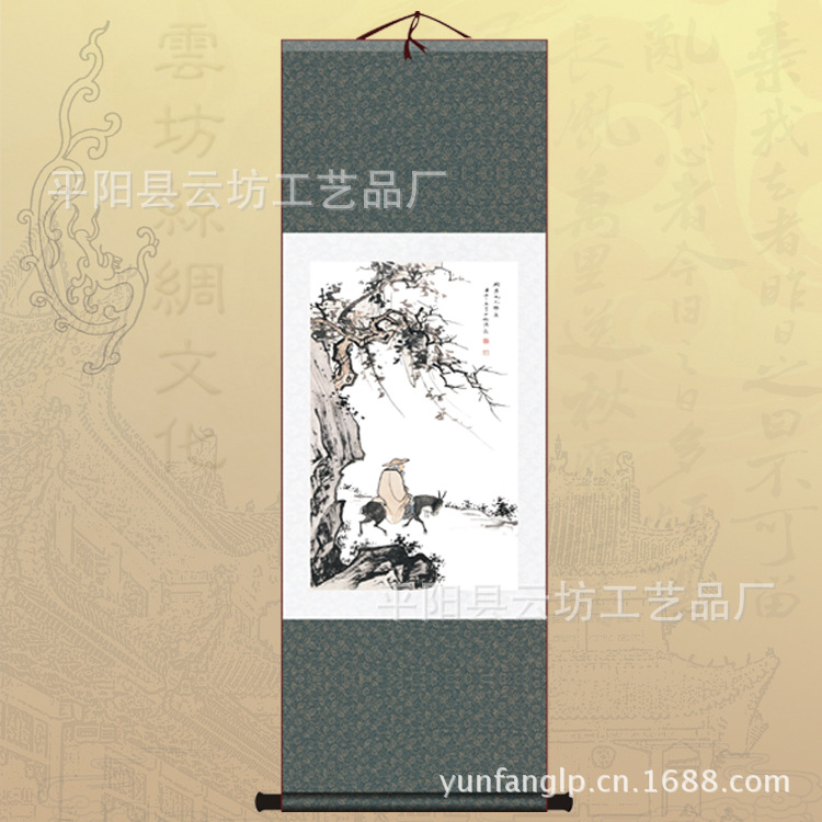 廠家直銷 供應絲綢畫 國畫 復制畫 卷軸畫 馿背尋詩