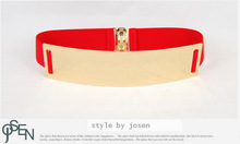 歐美風金色金屬鏡面扣頭個性女款松緊細款腰帶 批發