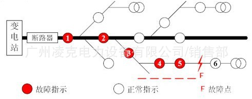 此款產品為廣州凌克電力在吸收國外先進技術的基礎上,自行開發,設計,生產的自動化故障檢測裝置。該產品采用進口單片計算機、模糊控制技術、納米防護等高科技技術精制而成,具有低功耗、智能化、可靠性高等優點。應用在10KV架空線路中,能夠迅速指示電力短路故障線路,為巡線人員指明短路故障所在的出線、分支和區段,免除了檢修人員巡線檢查故障點的麻煩,減少了停電范圍又縮短了停電時間,提高了供電可靠性。 線路應用示意圖