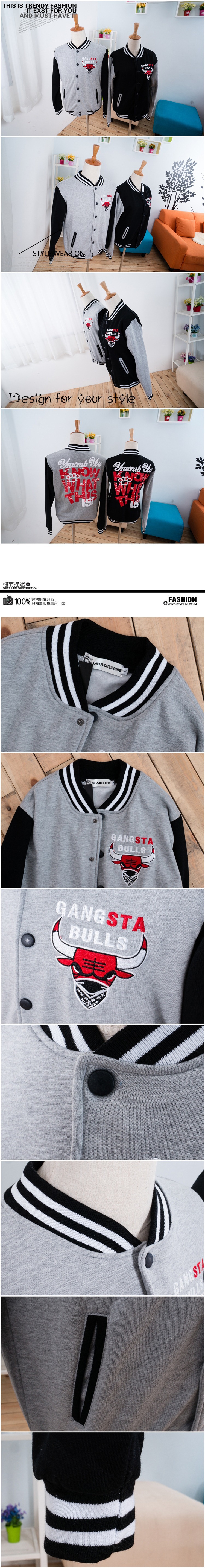 2014秋裝新款 撞色拼接 刺繡公牛頭字母棒球服