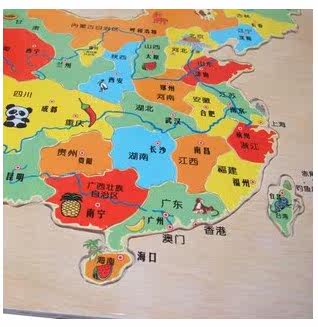 產品描述:色彩很豐富.培養孩子初級的地理知識,風土人情呀!鍛煉手眼協調和腦力,了解自己的祖國,國寶大熊貓生長在哪里?那里的人民喜歡吃辣椒(比如四川的版塊上有一個熊貓還有一個辣椒). 人的能力有看不見的部分和看的見的部分,比如對于植物來說,有看的見的美麗鮮花的部分,也有看不見的在地里靜靜的堅強的延伸的根的部分。 教育的基本,必須從根基開始培育,為將來開出美麗鮮艷的鮮花做基礎,這就是我們提倡的“親子智力玩具”。 所以我們建議:對于寶寶的教育,大人們千萬不要只照顧寶寶的吃、穿、睡,適時進行全面和諧的早期教育,合理開發寶寶的身心潛能,是父母給予寶寶一生有價值的財富.................