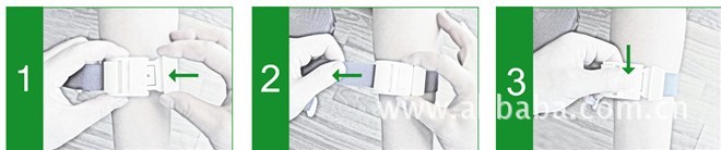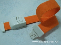 本公司生產的止血帶主要由彈性帶(扁形彈性松緊帶),ABS塑料件(扣盒,插件,手柄)組成。分為:成人型和兒童型兩大類,采用扁型的棉線維彈性帶,較傳統使用的橡皮管,使單位壓力下壓強大大減小,達到了適度壓迫,減小了病人的不適感和痛感。用于人體靜脈血樣采集過程或靜脈輸液,輸血,采血進行靜脈穿刺時使用。本產品操作簡單,使用方便規格;45cm*2.5cm;40cm*2.5cm;35cm*2.5cm