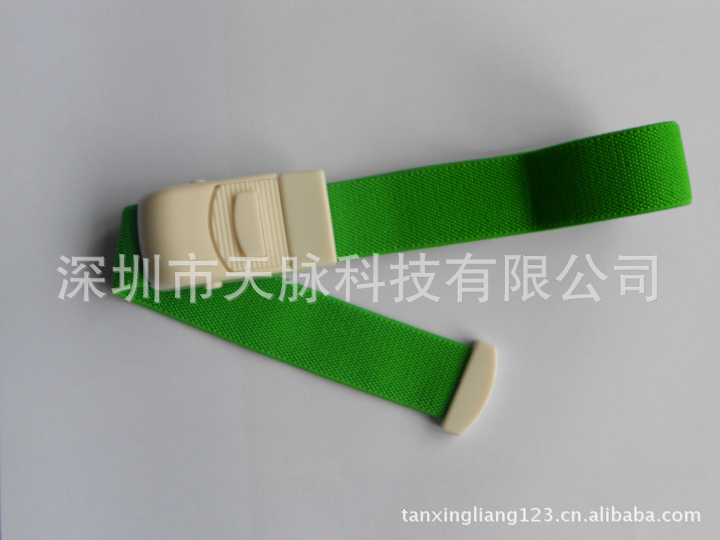 本公司生產的卡扣止血帶、壓脈帶,主要由彈性帶(扁形彈性松緊帶),ABS塑料件(扣盒,插件,手柄)組成,卡扣止血帶分為:成人型和兒童型止血帶兩大類,采用扁型的棉線維彈性帶,較傳統使用的橡皮管止血帶,使單位壓力下壓強大大減小,達到了適度壓迫,減小了病人的不適感和痛感。用于人體靜脈血樣采集過程或靜脈輸液,輸血,采血止血帶,進行靜脈穿刺時止血的效果。通常也稱壓脈帶,本產品操作簡單,使用方便。