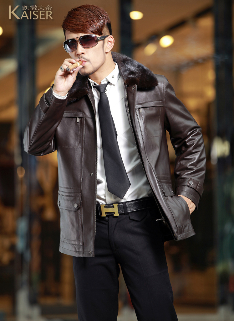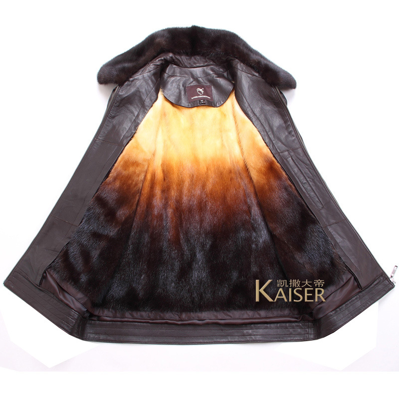 廠家直銷2014海寧男士水貂皮衣外套水貂毛領黃金貂內真皮尼克服