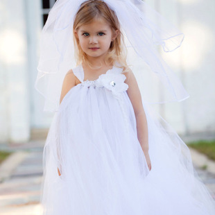 Ellie's Bridal 2014爆款粘花花童下裙 婚紗裙 節日宴會表演裙