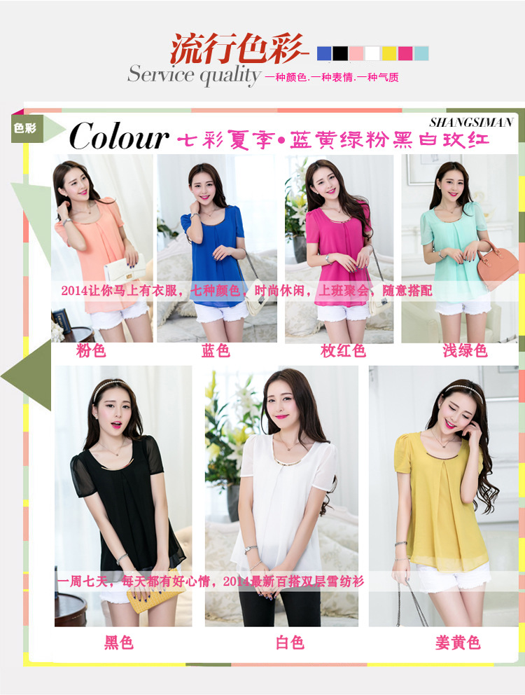 2014雪紡衫 短袖 韓版夏裝女裝修身大碼品質清涼雪紡衫上衣