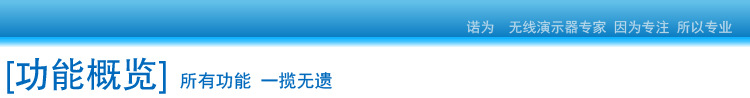 產品具有激光、上翻頁、下翻頁、全屏、黑屏功能。