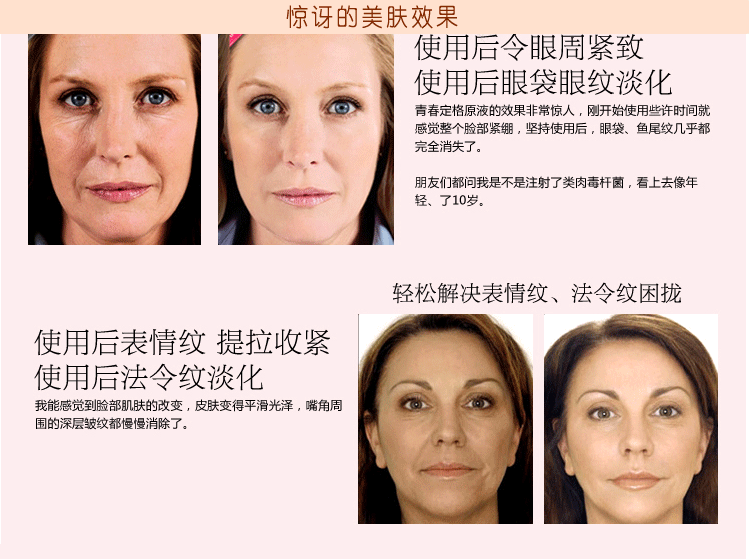 2、一瓶多效,八維度***肌膚,淡化臉部歲月痕跡;整體提亮皮膚亮度和光澤度;瓦解黑色素,均勻提亮膚色;修復各種皮膚瑕疵,使皮膚變得均勻;改善暗沉,去黃氣,提升皮膚元氣;撫平魚尾紋、法令紋等各種皮膚細紋、皺紋;分散去除臉頰紅斑、泛紅及紅血絲;改善皮膚粗糙度,使皮膚變得柔嫩,宛若新生。