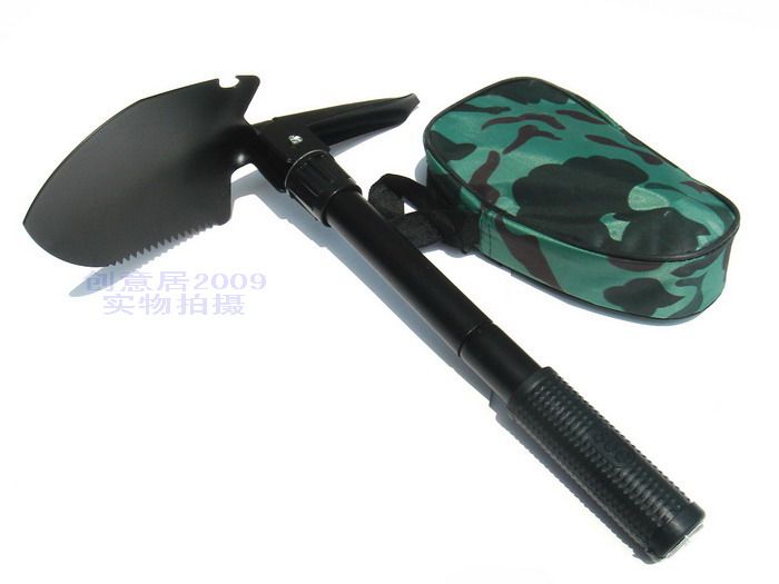 特點:可以折疊,體積小,方便攜帶。展開后一頭是鏟,一頭是鎬??蓮澢?,可折疊,手柄可橫可豎,是