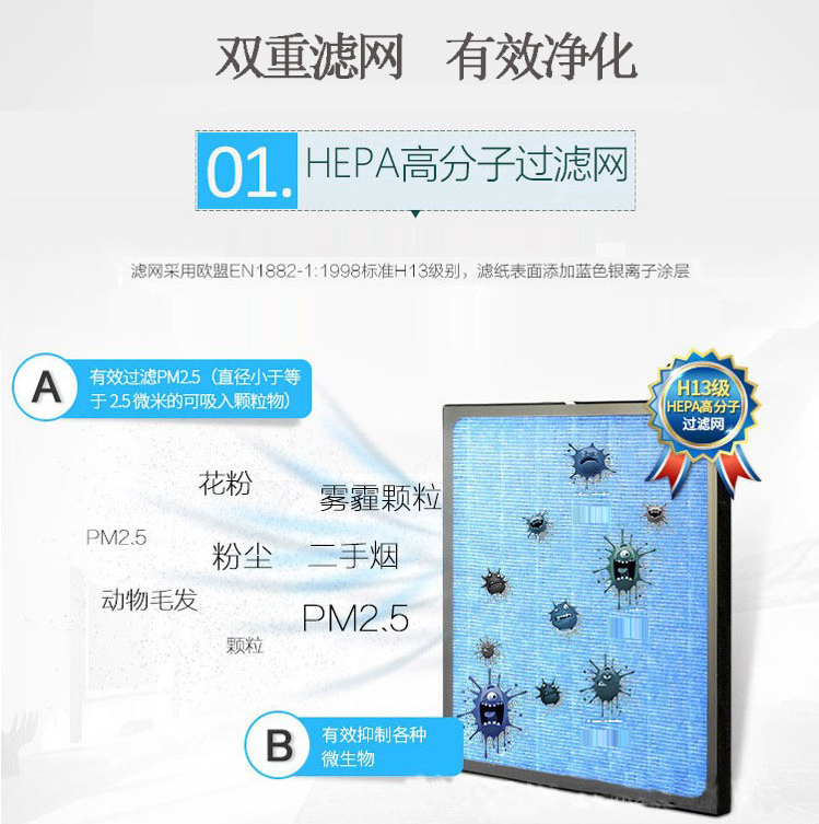 1.使用HEPA高分子過濾網。