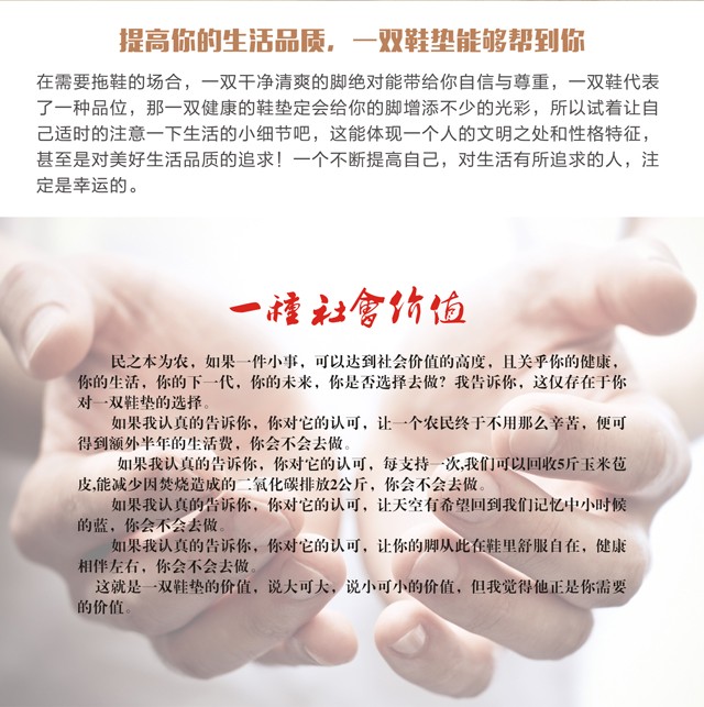 玉米纖維保[jian]鞋墊,綜合利用玉米秸稈使其變廢為寶,我們在秋季收集廢棄的玉米穗外苞皮經生物科技提取后的天然玉米纖維做填充物,加十幾種保[jian]除臭中藥處理后用機械和半手工制作而成玉米纖維保[jian]鞋墊。