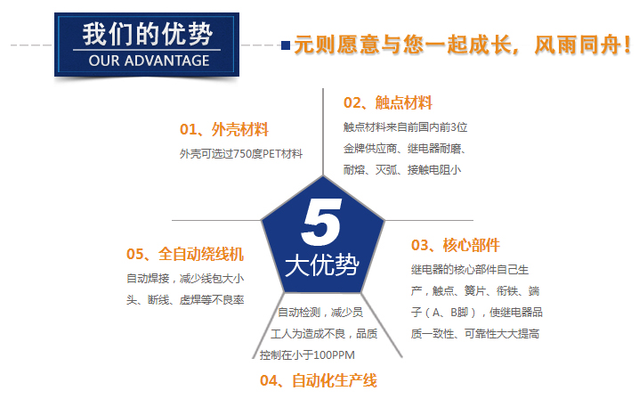 元則電器公司始終貫徹“以人為本,誠信務實,品質為元,則定未來”的企業宗旨,堅持“創新、共贏”的核心價值觀,以“與員工共成長,與客戶同發展”為經營理念,憑借在電子元器件行業的專業水平和成熟的技術,在繼電器領域迅速崛起,經10年快速發展,邁入中國繼電器知名品牌。
