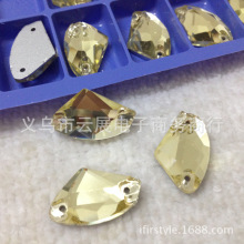 淺黃手縫鉆 斧頭手縫鉆 異形雙孔平底玻璃鉆 服裝輔料DIY手