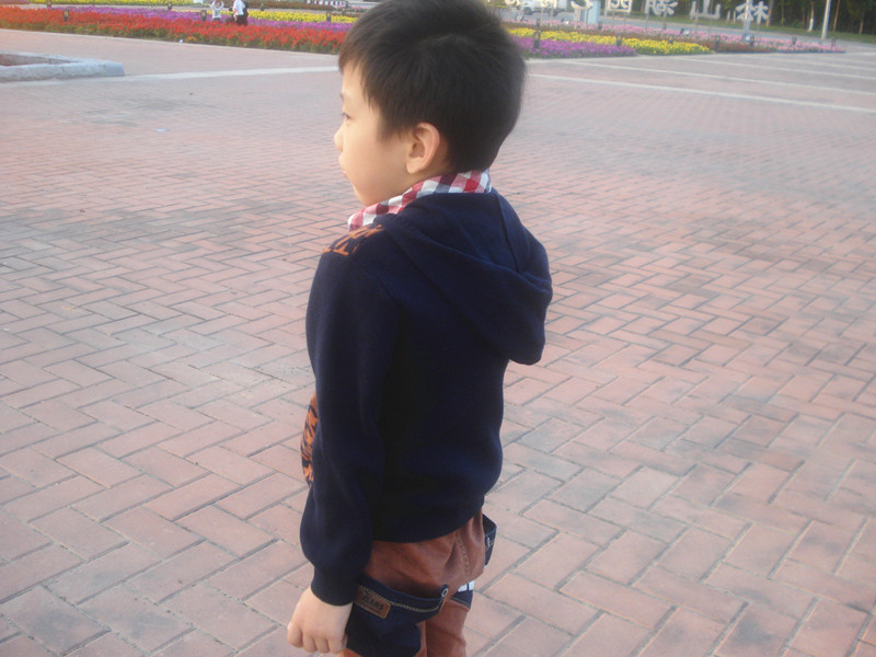 專業訂做藍雙色提花男童純棉毛衣(高清大圖)連帽針織衣開衫