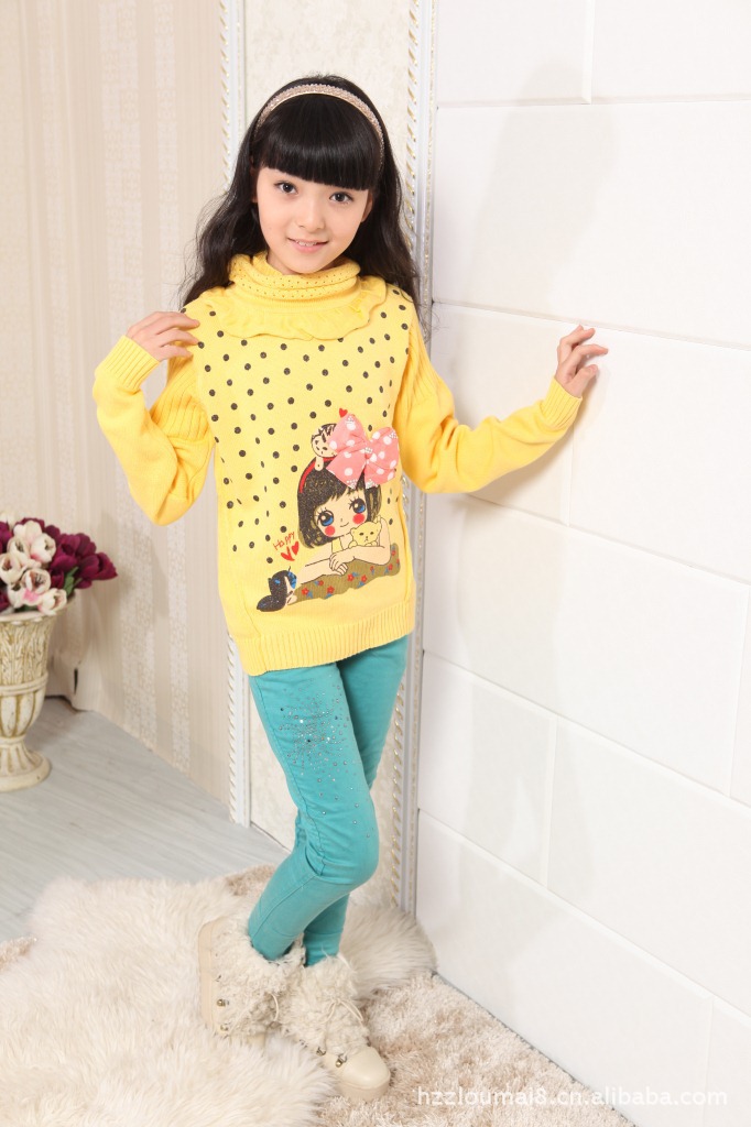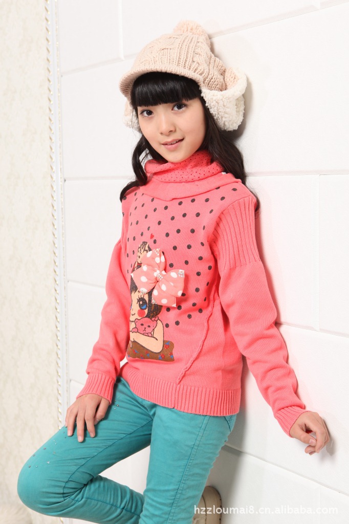 兒童毛衣童裝針織衫全棉波點小姑娘中大童打底衫毛衣批發