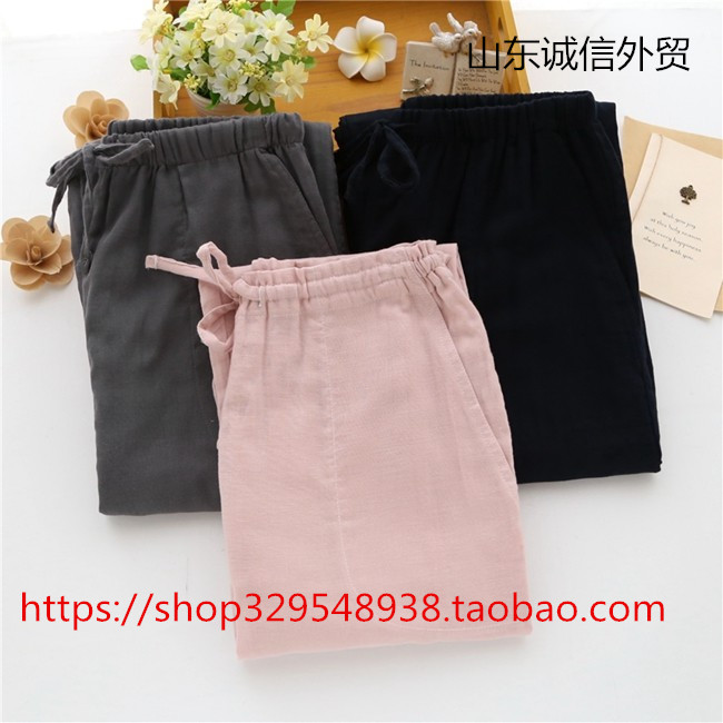• 產品名稱新品男女士春夏季紗布睡褲純棉薄款家居長褲情侶全棉睡褲寬松