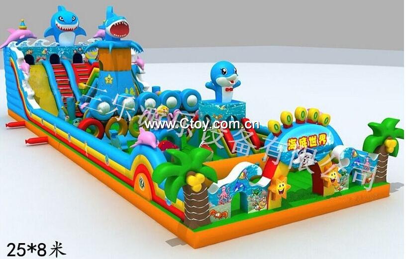 一款大型的充氣滑梯里面的造型豐富,有滑滑梯,小動物,小房子還有攀巖,等多種造型哦!規格大小支持定做,快來采購吧!