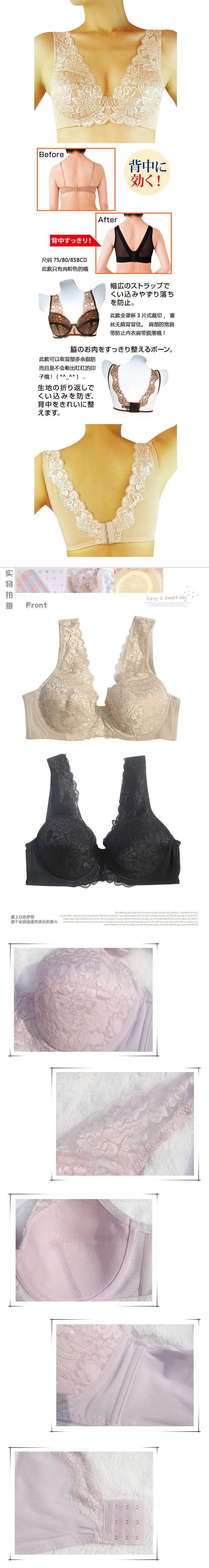 下圍加寬設計:下圍比普通內衣加寬8CM左右,屬于這個款式的設計特色。東方女性的胃部尺寸偏大,這個內衣的設計很好的對女性的身材有一個塑形作用。美觀的同時對于身材也有很好的雕塑作用,很棒的設計。