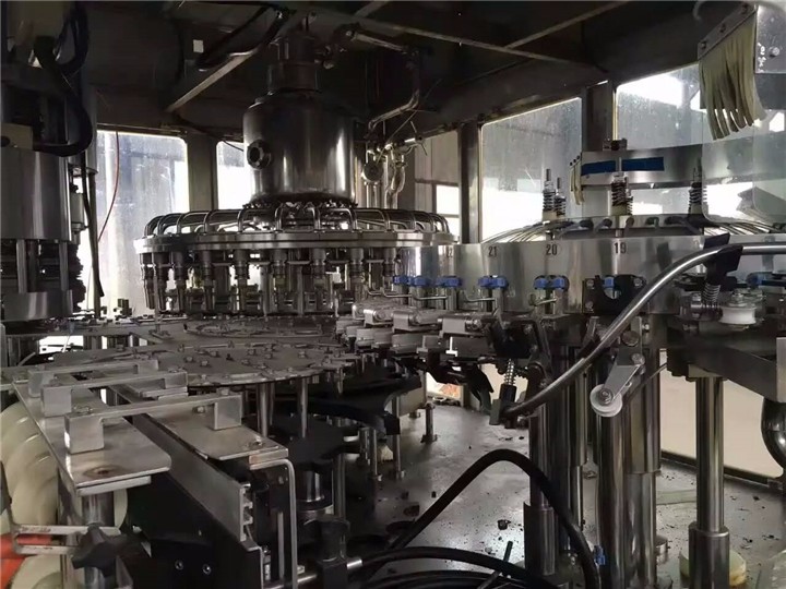是在高于大氣壓力下進行灌裝,也可分為兩種:一種是貯液缸內的壓力與瓶中的壓力相等,靠液體自重流入瓶中而灌裝,稱為等壓灌裝;另一種是貯液缸內的壓力高于瓶中的壓力,液體靠壓差流入瓶內,高速生產線多采用這種方法。壓力灌裝機適用于含氣體的液體灌裝,如啤酒、汽水、香檳酒等。