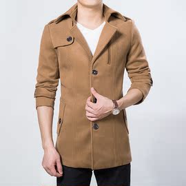秋冬青年男士時尚修身羊毛呢子大衣英倫中長款風衣商務休閑外套潮