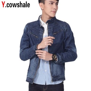 2014秋冬新款韓版立領男式夾克 男裝修身牛仔外套上衣廠家批發7.9折大促原價95.00¥75.00
