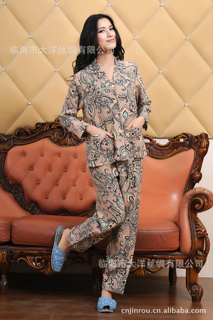 供應錦柔高檔精品睡衣8838女士長袖款重磅真絲睡衣褲套裝 家居服