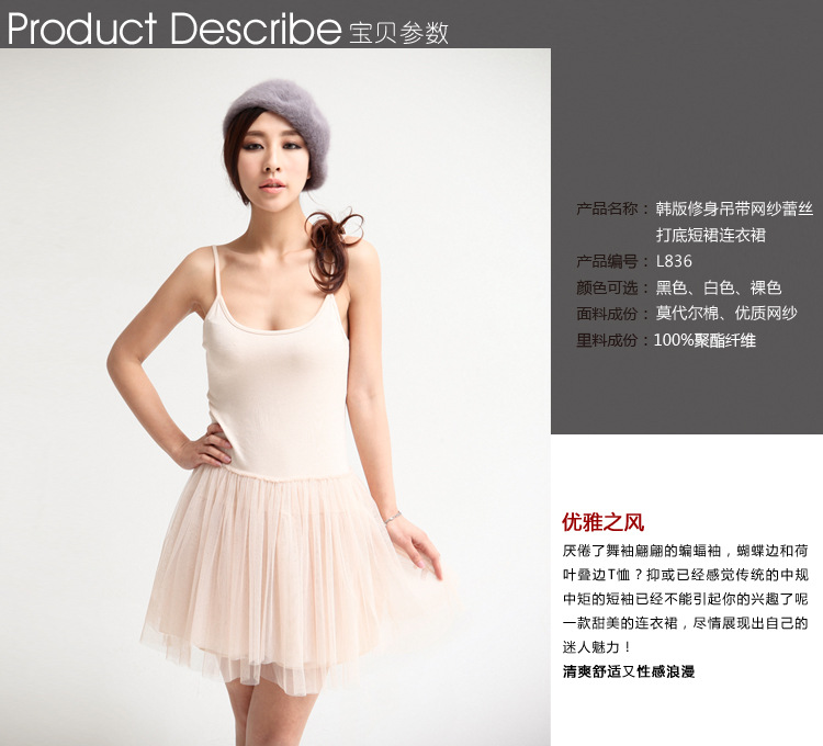我們采用的是莫代爾的吊帶面料,下擺是兩層網紗加一層內襯哦