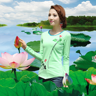 廠家直銷新款品質民族風長袖T恤彈力純棉繡花女式打底衫特價 促銷29.0 ¥29.0熱銷0