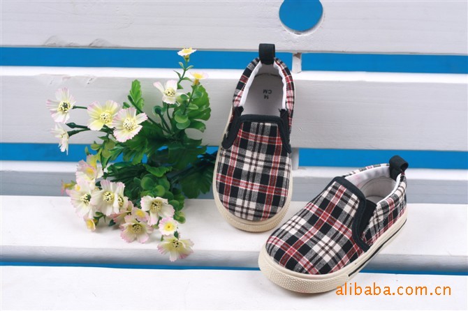 廠家直銷批發供應外貿童帆布鞋耐磨黑色條紋嬰兒童鞋