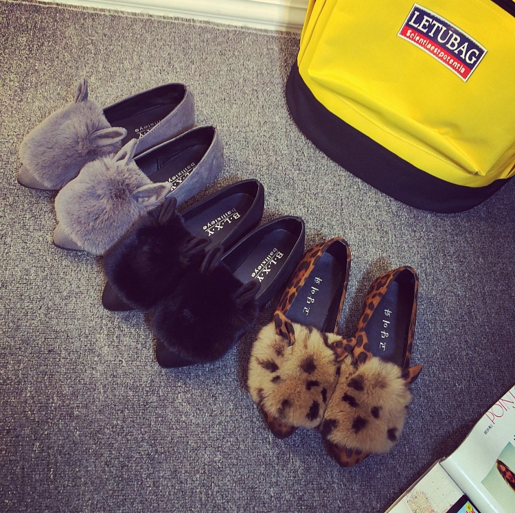秋冬新款修面皮甜美兔毛短靴女低跟短筒圓頭魔術貼馬丁靴潮學生鞋¥ 39.00