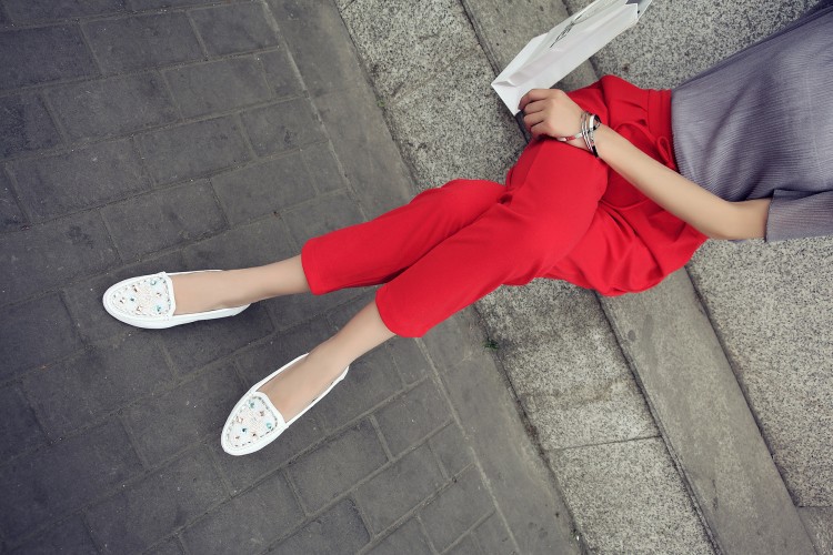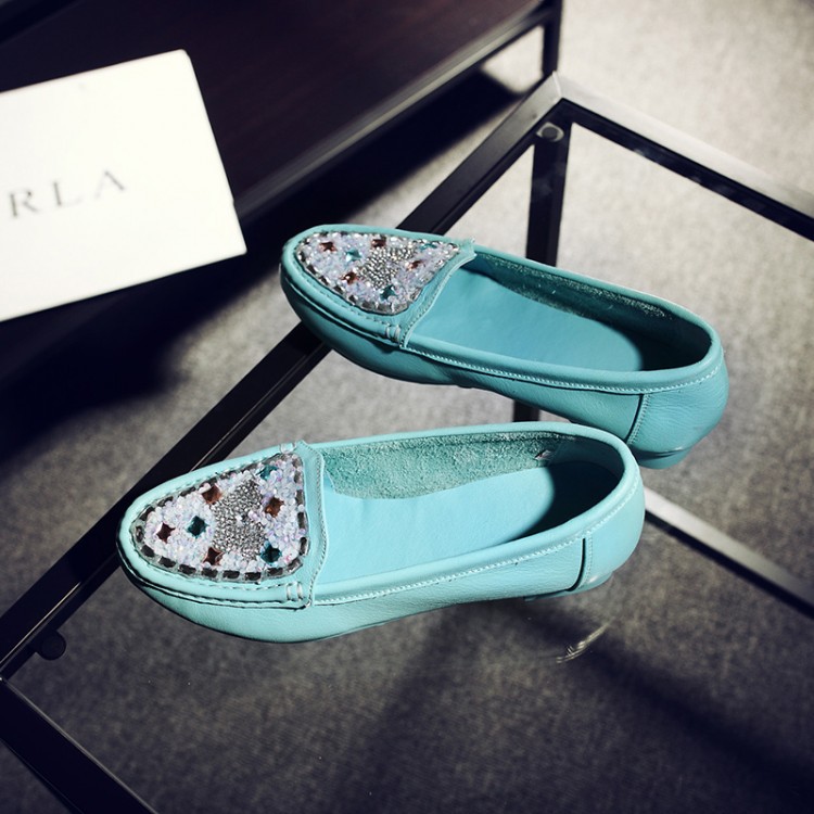 防滑真皮豆豆鞋平底女水鉆休閑鞋白色護士鞋孕婦鞋2015春秋