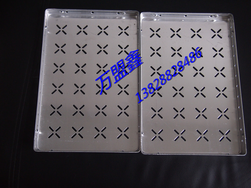 2.鋁盤的透氣孔全部采用圓孔形狀,采用圓孔形狀不破壞鋁盤底部強度,不易變形,相比十字孔,不僅十字的四個花瓣容易向上翹起,還容易造成小型線路板從十字縫隙里掉出去;故新型圓孔更方便使用。