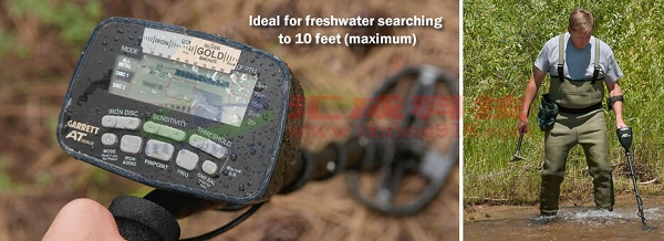 AT Gold是一款手動金屬探測器,這意味著探測圈一直在保持探測任何微小的反應,即使實在靜電干擾的情況下也可以通過jing確模式下探測。AT Gold 擁有手動和自動模式(其中包括獨有的地面平衡窗口)以優化在高密度金屬區域(最容易發現金子的地方)的探測性能。探測器可以在約3米左右深的河流或者小溪中運作。探測器還有全金屬探測模式,它有兩種不同的識別模式,可以識別各種古幣和舊遺物。當你選擇DISO1或者DISO2模式時,機器會通過發出不同的聲音來告訴操作者識別是否是他需要的東西。它是一款單手操作的機器,它沒有轉盤或把手需要兩只手操作。探測器獨有的目標代碼技術提供兩個識別器(你可以在設置中查看)。目標代碼技術可以提供更多關于目標的細節。AT Gold 也有高分辨率的模式以除去一些鐵垃圾。還有一個13*20cm的探測圈以發現小金塊等等。